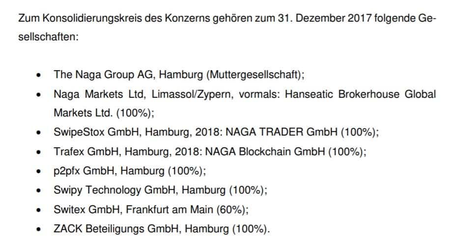 Auf Seite 37 des - im Juli veröffentlichten und übrigens UNtestierten - Geschäftsberichts für 2017 findet man unter den aufgelisteten Beteiligungen der NAGA Group AG keine NAGA Development Association Ltd.