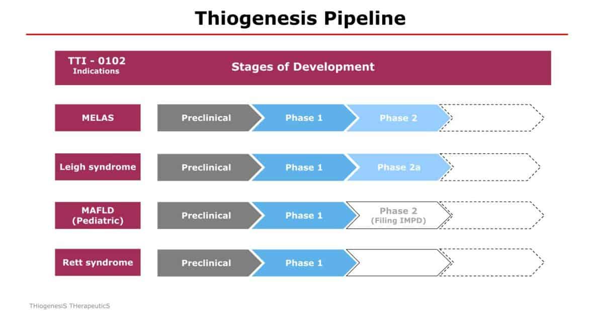 - Die ersten Anwendungen von TTI-0102 betreffen MELAS, das Leigh-Syndrom, das Rett-Syndrom und die pädiatrische nicht-alkoholische Steatohepatitis (MASH).