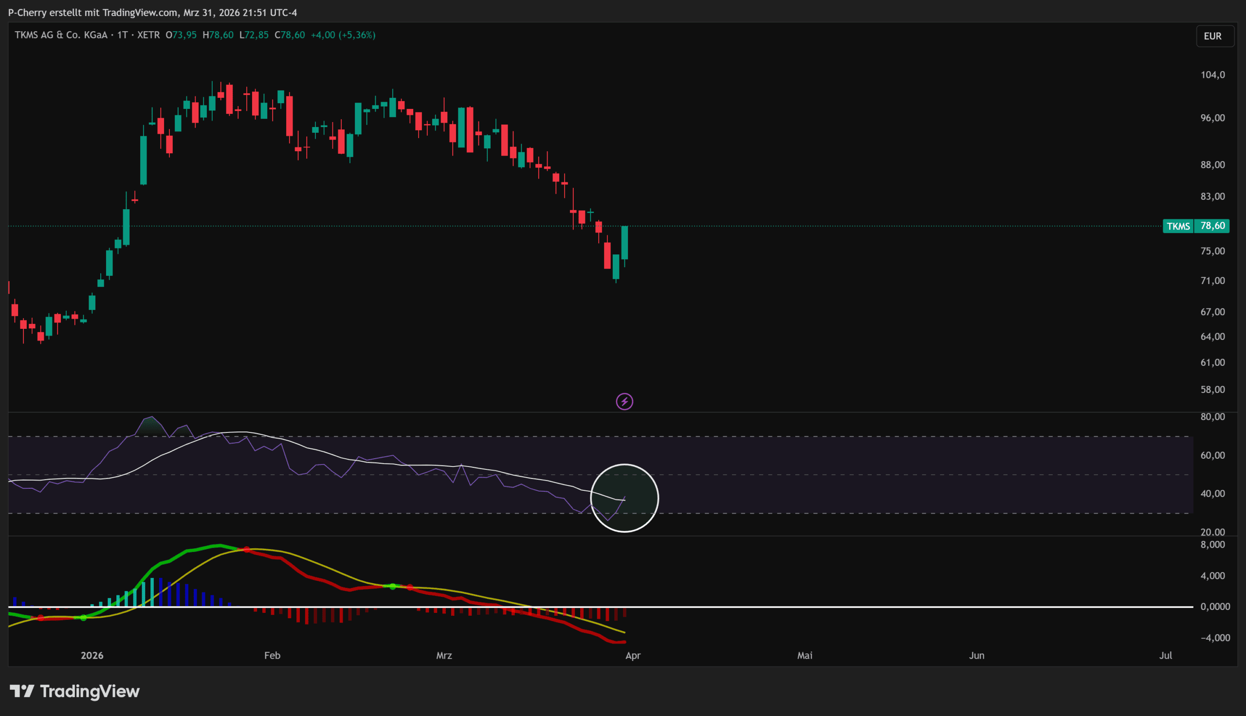 TKMS, Tageschart, Quelle: Tradingview.com