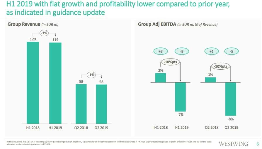 Umsatz- und Ergebnisrückgang in der ersten Jahreshälfte. Quelle: Westwing Präsentation
