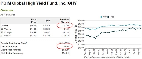 Bei CEFs ist eines sehr praktisch: Der Net Asset Value eines CEFs wird börsentäglich neu veröffentlicht. Liegt der Marktpreis für einen Anteil unter dem NAV, handelt der Anteil mit einem Discount auf den NAV. Im gegenteiligen Fall, wenn der Marktpreis über dem NAV liegt, handelt der CEF mit einer Prämie auf den NAV.
