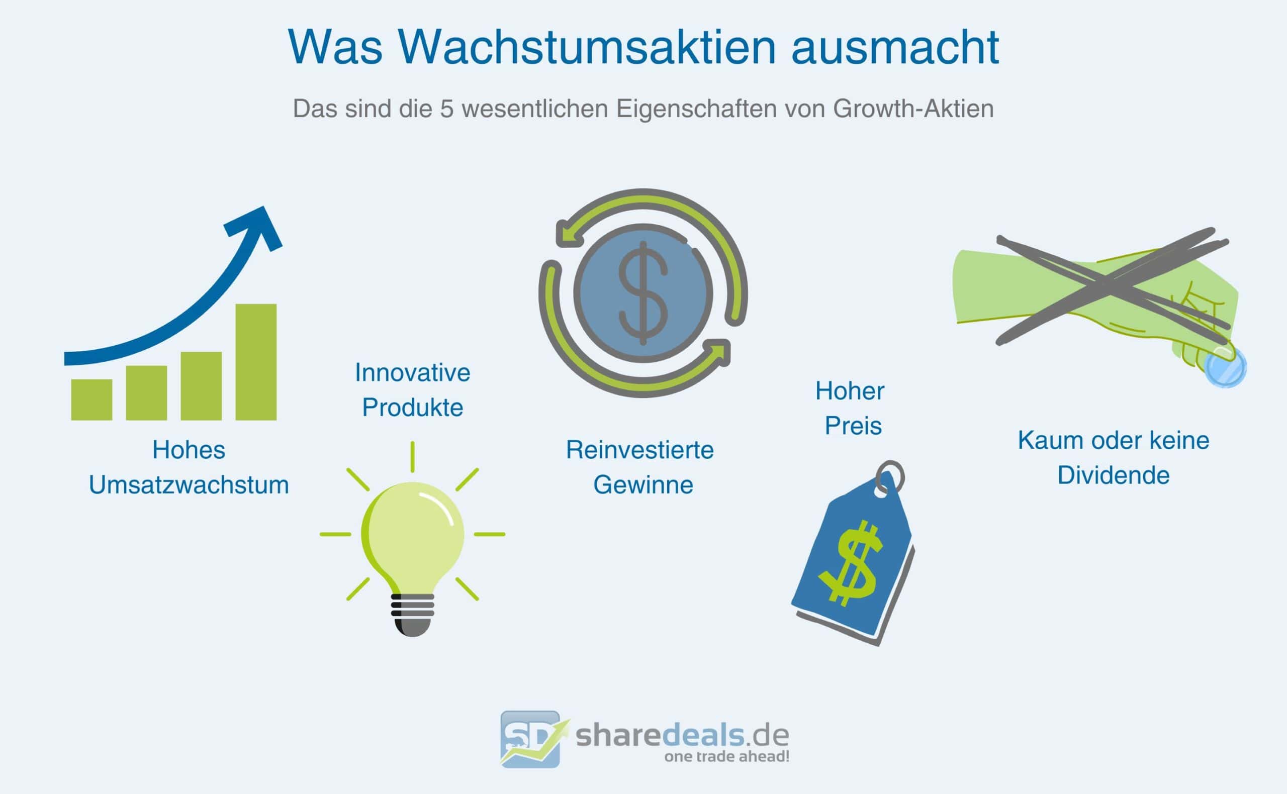 Diese Eigenschaften haben die allermeisten Wachstumsaktien gemeinsam. | Grafik: Eigene Darstellung